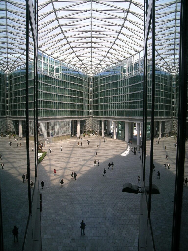 Le quartier CityLife, projet urbain majeur de Milan, rassemble plusieurs tours emblématiques dont l’Allianz Tower (Torre Allianz) et la Torre Diamante (Diamond Tower). La Torre Allianz, conçue par Arata Isozaki et Andrea Maffei, se situe à Piazza Alvar Aalto 6, 20145 Milano (complexe CityLife). La Torre Diamante est située à Piazza Tre Torri, 20145 Milano, au sein du même complexe. Ces bâtiments incarnent une approche mixte : bureaux, centres commerciaux étendus, espaces publics piétonniers et zones de loisirs. Les intérieurs sont pensés pour le confort du travailleur moderne : halls connectés, atriums végétalisés, systèmes de contrôle climatique et éclairages programmés pour optimiser le bien-être.